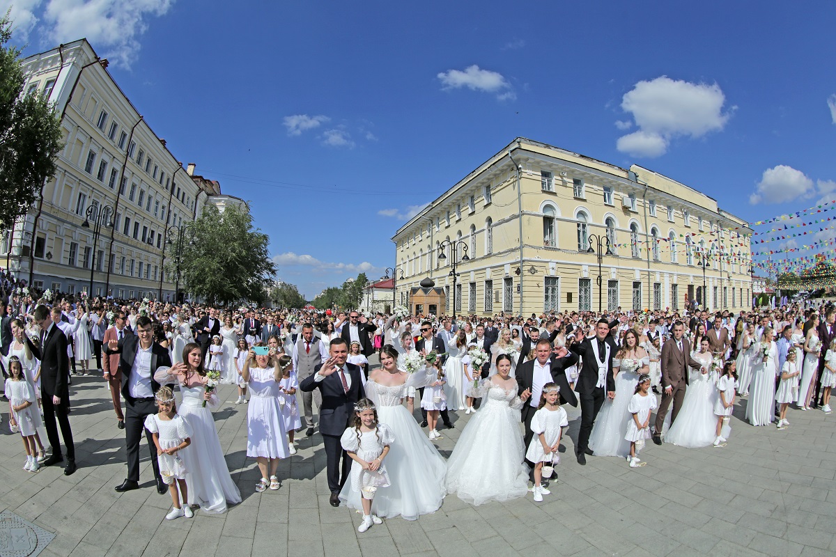 В Оренбуржье с размахом прошли «Большие семейные выходные». Самым ярким и необычным событием в богатой программе проекта Года семьи стала «Большая свадьба Оренбуржья». В областном центре собрались 90 пар молодожёнов из разных уголков региона.