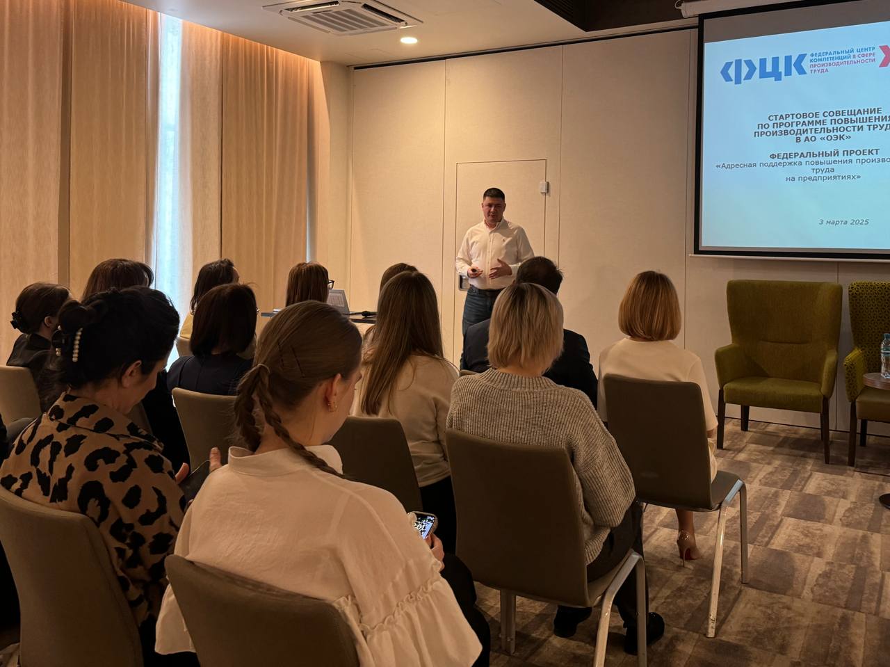 Эксперт ФЦК Олег Гараев в рамках стартового совещания представил рабочей группе задачи федерального проекта и принципы бережливого производства, обозначил сроки и этапы реализации.