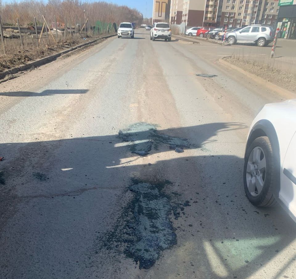 В областном центре продолжается ямочный ремонт литым асфальтом.