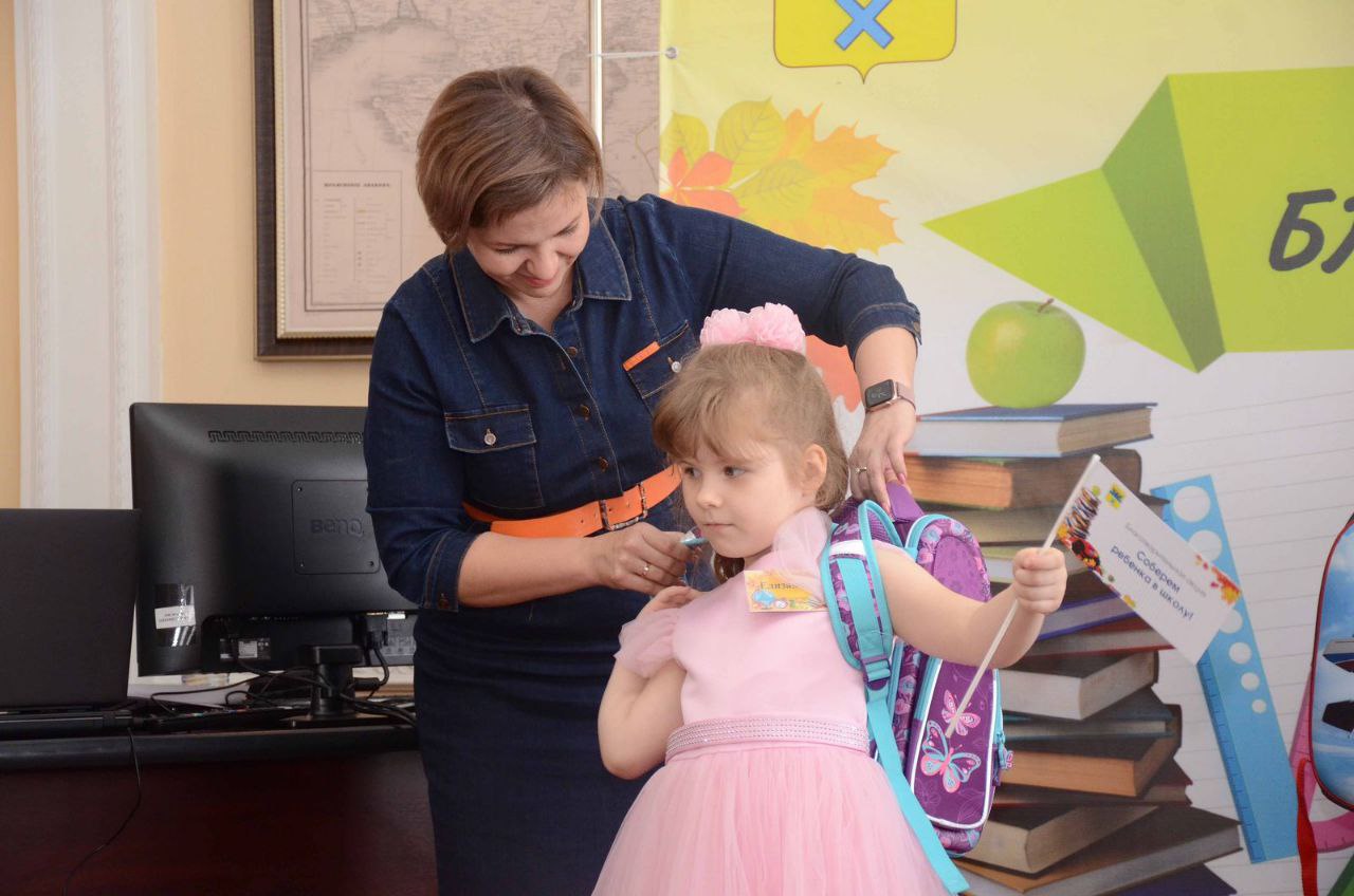 В областном центре продолжается благотворительная акция «Соберём ребёнка в школу». Перед началом нового учебного года проходит торжественное вручение школьных ранцев и наборов канцелярских принадлежностей ученикам начальной школы.