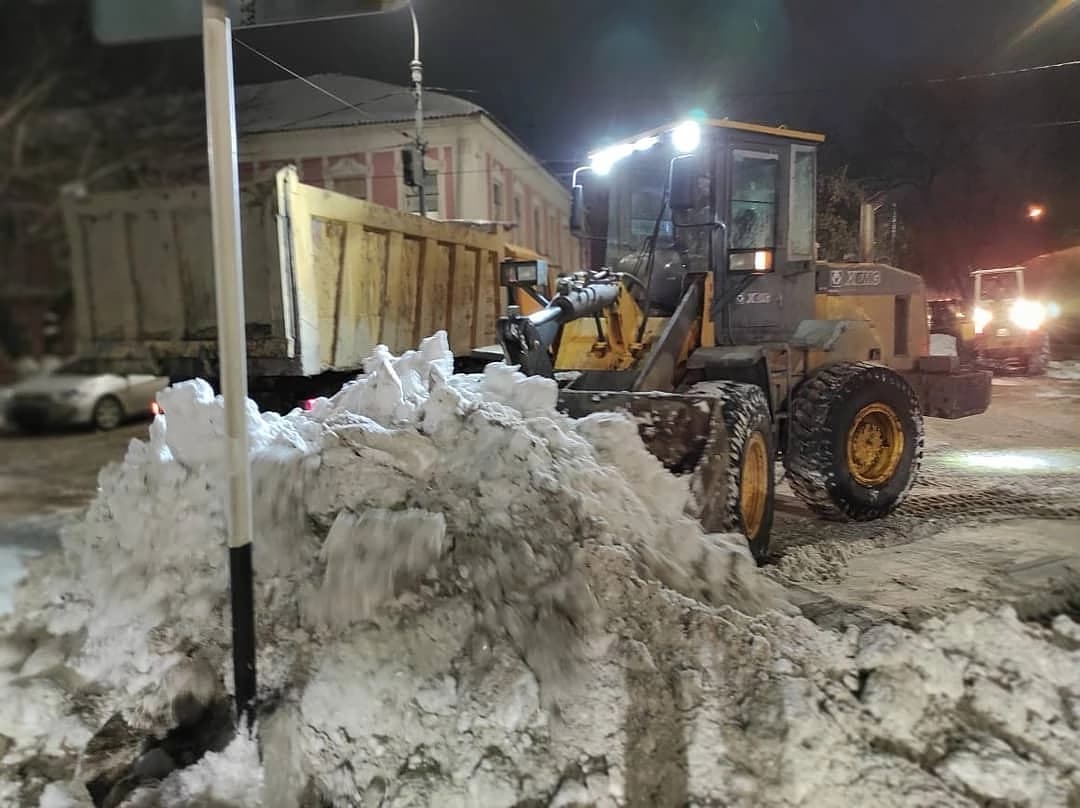 В ночь с 28 на 29 января погрузчики, тракторы и самосвалы работали на улицах Котова, Полтавской, Пролетарской, Транспортной, Рощина, Брестской, Цвиллинга и Комсомольской.