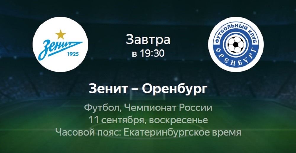 В девятом туре Премьер-Лиги на «Газпром Арене» в Санкт-Петербурге ФК «Оренбург сыграет» с «Зенитом». Начало матча в 17.30 по московскому времени.