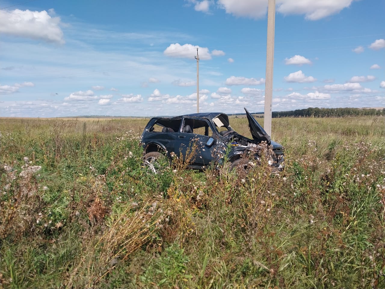 В Оренбургской области около села Дьюсметьево женщина перевернулась на «Ниве».