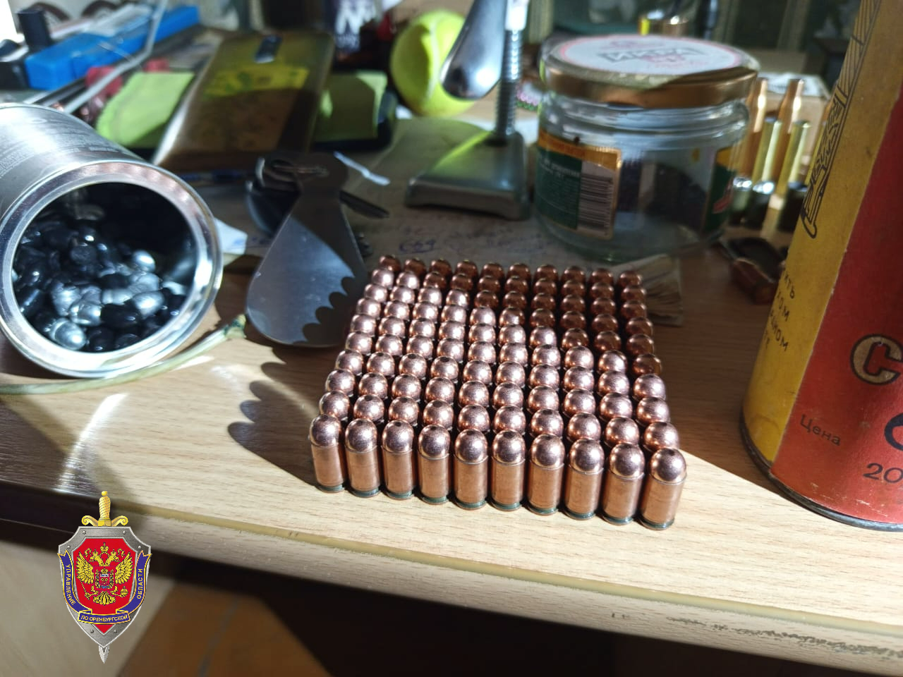 По месту жительства мужчины обнаружили и изъяли 2 сигнальных пистолета, переделанных под стрельбу боевыми патронами, в количестве 1177 патронов калибра 9 мм, взрывчатку массой более 400 граммов, а также составные части огнестрельного оружия.