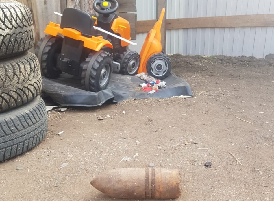 В Новосергиевке во время уборки территории двора местный житель нашёл металлический предмет, похожий на снаряд. Боеприпас находился за гаражом в старой куче мусора под листвой.