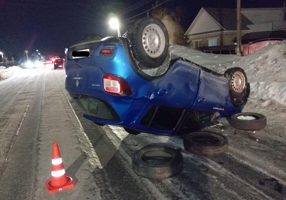 32-летняя женщина-водитель автомобиля Renault Sandero не справилась с управлением и допустила опрокидывание автомобиля.