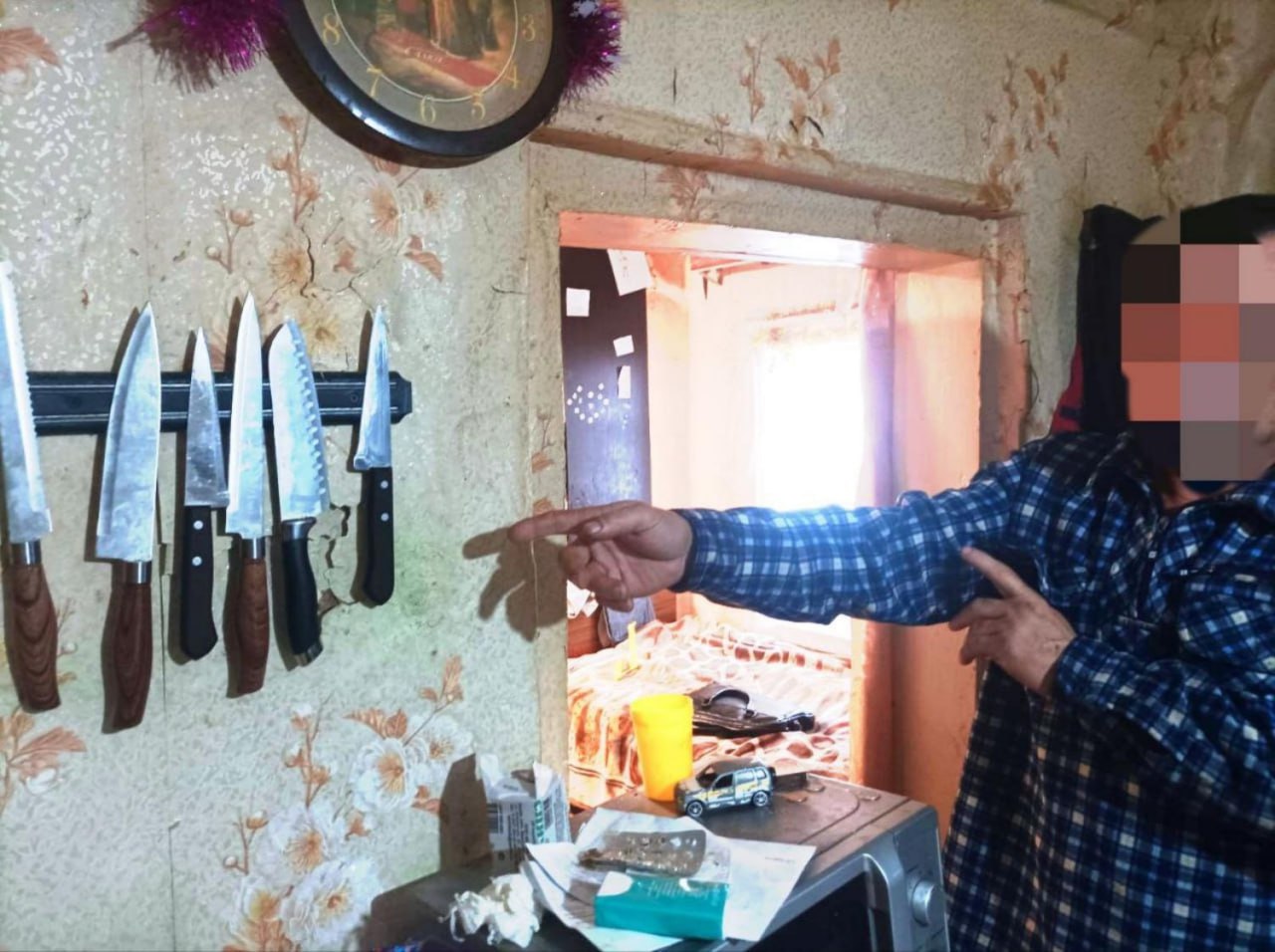 Конфликт произошёл во дворе частного дома. Мужчина одной рукой схватил нож, а другой – жену за горло, угрожая её убить. Женщина сумела вырваться и обратилась в полицию. Агрессора доставили в отдел для разбирательства.