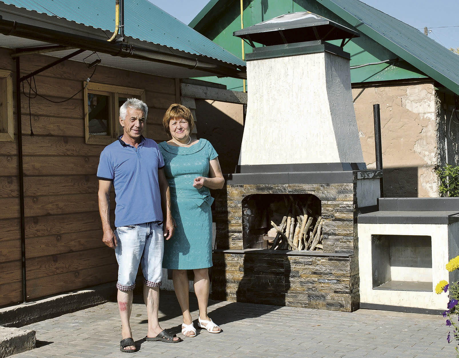 Территория хозяйственных построек отделена высоким белым штакетником, на фоне которого отчётливо выделяются ярко-зелёные туи. За диким виноградом спрятана старая беседка, где хранится садовый инвентарь. Рядом небольшой мангал, на котором Равиль готовит шурпу, плов. А для шашлыков, их любят сыновья, в прошлом году соорудили большой камин.