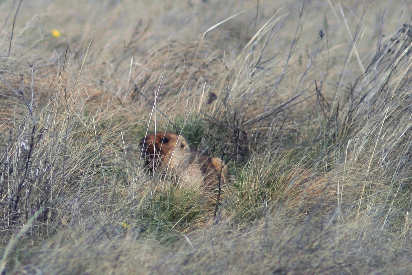 Один раз я шёл по степи и поймал на себе чей-то взгляд. Остановился. Огляделся. И заметил, что из-за холма, прямо из-за кочки ковыля на меня внимательно смотрит сурок. Молодой сурок осторожно прилёг в траве. Он всматривается в мир, в синее полыхание прострела обыкновенного, в жёлтые маяки адонисов, по которым скользит южный ветер. Сурок вглядывается в первую пчелу, проснувшуюся и разыскивающую медоносы. Сурок недоверчиво ловит взглядом игривую