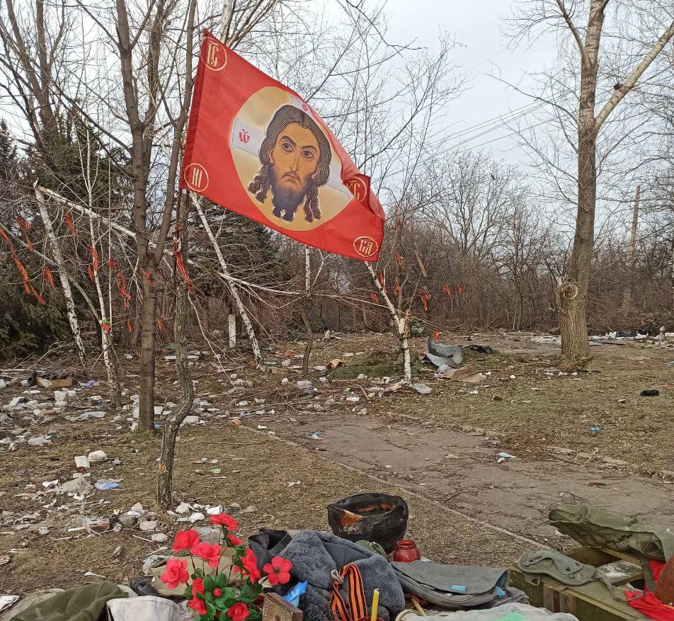 Здание было разрушено до такой степени, что от него остались только груды бетона. Местные жители и родственники бойцов устроили здесь народный мемориал: укрепили стяг со Спасом Нерукотворным, повязали георгиевские ленточки, собрали пробитые каски и обгоревшие бронежилеты, обломки оружия. Здесь постоянно зажжённые свечи и лампады.