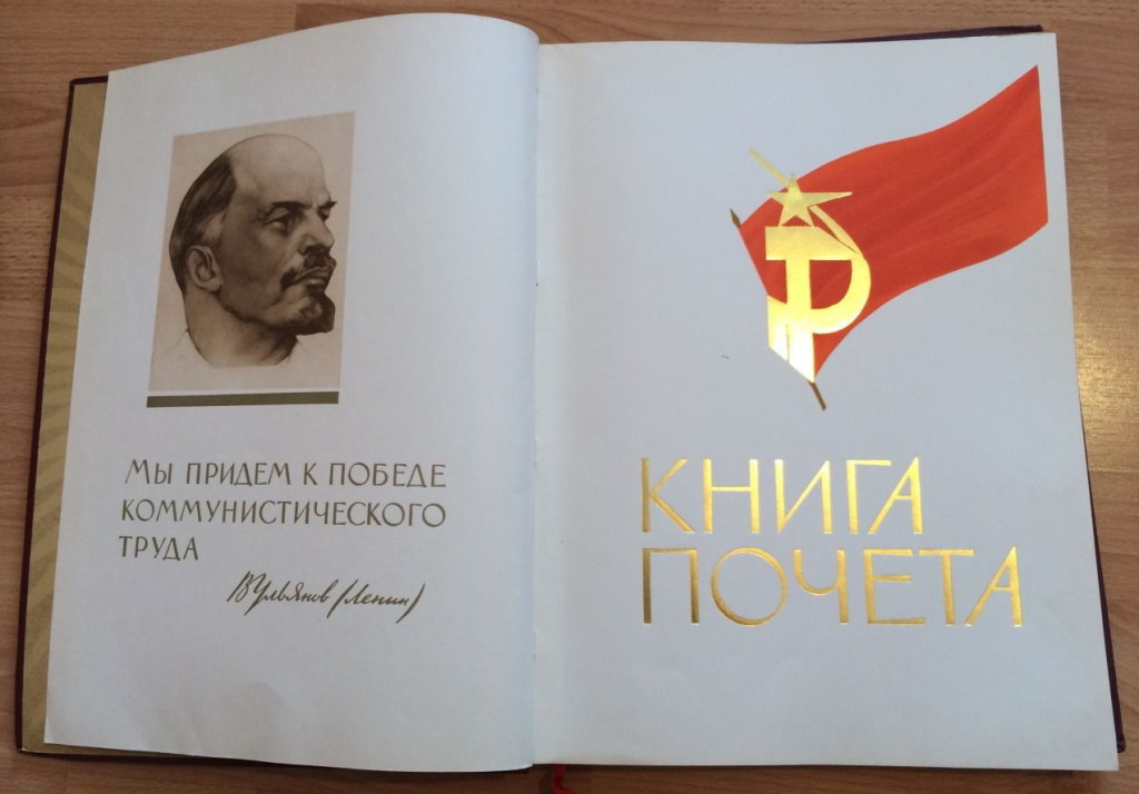 – Посмотрите, а вот рубанок с Государственным знаком качества СССР. Такое обозначение использовали для маркировки серийной продукции гражданского назначения высокого качества, которую выпускали предприятия СССР. Оно означало соответствие ГОСТу, – рассказывает Алла Владимировна. Особую ценность представляет Книга почёта. На многих предприятиях СССР была специальная книга для занесения на её страницы имён наиболее отличившихся рабочих и служащих – победителей в социалистическом соревновании, участников движения за коммунистическое отношение к труду. Кроме того, к 100-летию СССР студенты провели акцию «Устная память». Ребята записали воспоминания своих родителей, бабушек и дедушек о жизни в Союзе.