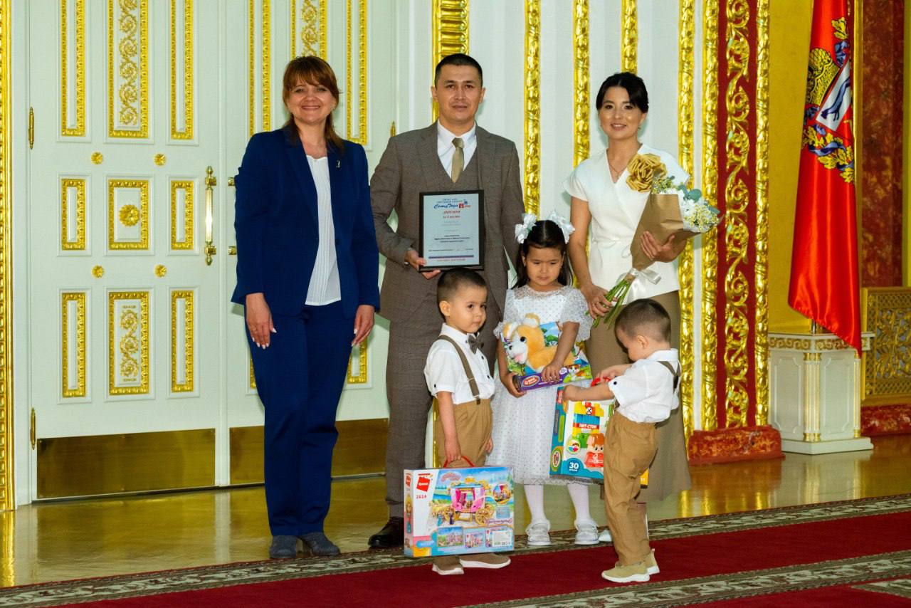 Второе место у Исмурзиных из Беляевского района. Их семейный стаж более 50 лет, воспитали четверых детей. Осенью 2024 года их сыну Максоту Исмурзину, участнику СВО посмертно присвоено звание Героя России. Глава семьи Бахитжон на награждении был без супруги Курманай, которая не смогла приехать по состоянию здоровья.