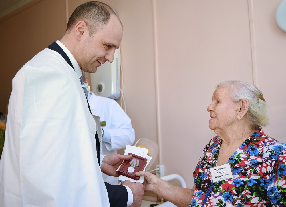 Сегодня губернатор посетил областной клинический психоневрологический госпиталь ветеранов войн. Он встретился и пообщался с пятью пациентами, вручил им медали в честь 75-летия Победы в Великой Отечественной войне, а также подарки и цветы.
