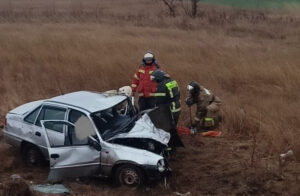 ДТП произошло 29 октября около села Ратчино Шарлыкского района. При обгоне автовоза водитель автомобиля Daewoo Nexia допустил столкновение с автомобилем LADA Granta, который двигался во встречном направлении. Водитель автомобиля Daewoo Nexia скончался на месте. Ещё двое пострадавших госпитализированы. При помощи специального инструмента работники ОПП № 85 противопожарной службы Оренбургской области деблокировали погибшего. Фото: Департамент...