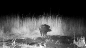 На востоке Оренбуржья в фотоловушку попал кабан, принимающий грязевую ванну