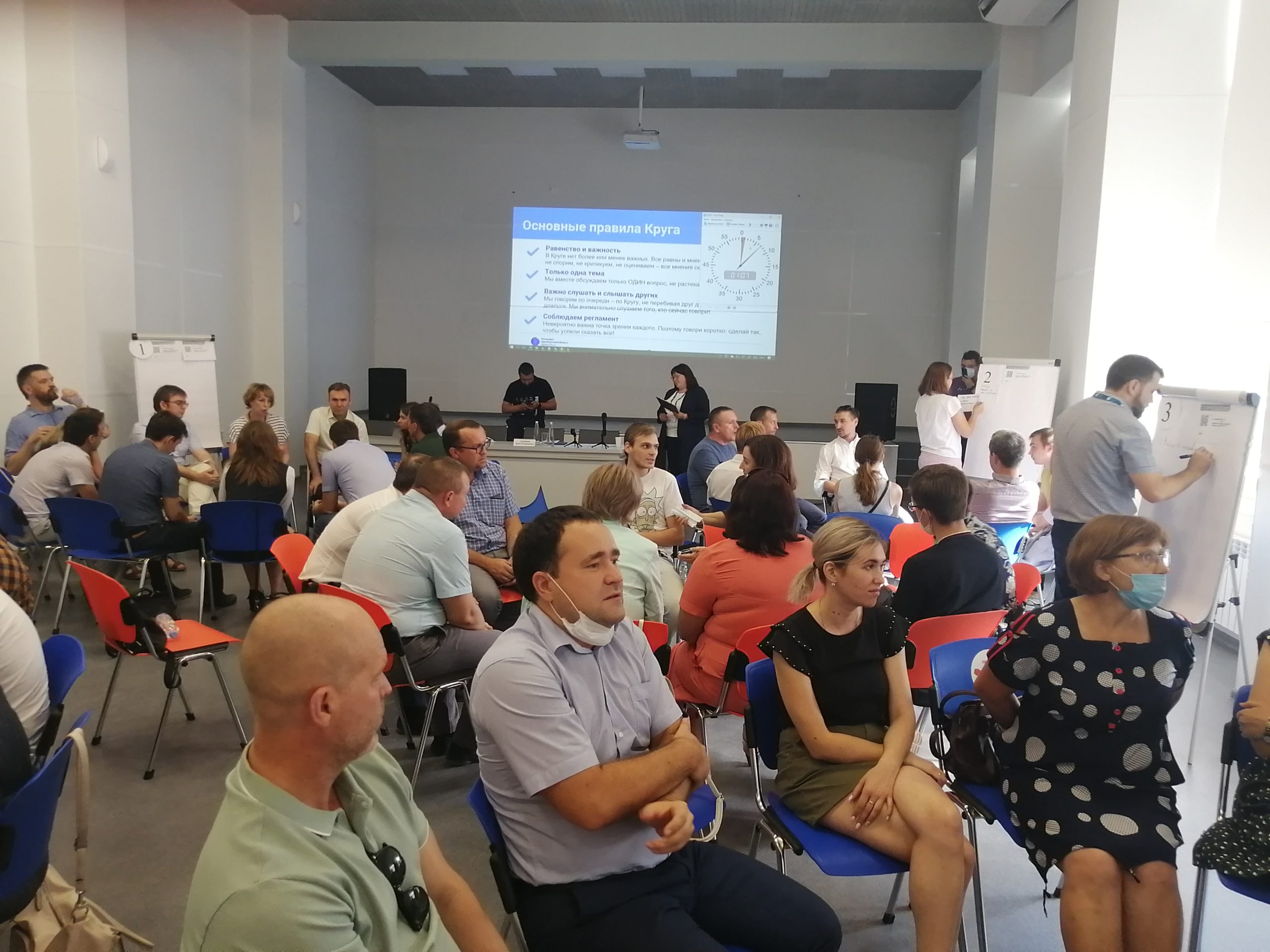 Но, как это сделать? Ответ на этот вопрос искали участники встречи в Оренбургском колледже экономики и информатики. Причем искали интересно и творчески, методом кругового обсуждения. Собравшиеся разбились на пять команд и устроили мозговой штурм. Основные правила круга подчеркивают открытый характер работы минцифры области, для которого важен результат. В круге нет более или менее важных. Все равны и мнение каждого важно. Здесь не спорят, не критикуют, не оценивают – все мнения складываем в центр круга. Важно слушать и слышать других.